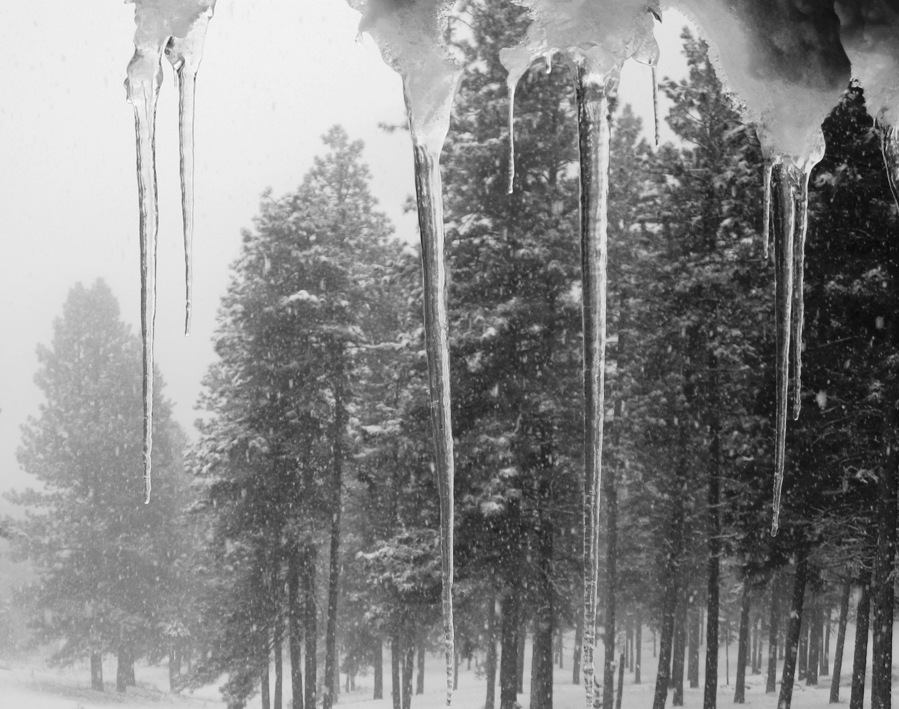 The pale blue glow of the dash on my husband’s face as he focuses on the road ahead, a narrow path of vision, white tracks on a white road with white branches bending over. We see only as far at the headlights allow, a narrow tunnel, all white ending abruptly in black. The unknown void beyond. Nothing too interesting. We’ve seen it all during the day. No surprises lurking (like the sudden sheer drop off fifty feet down into the vast expanse of the Rio Grande Reservoir found on our drive home in Colorado) except the regular crossing of the deer, calm and oblivious to our big truck with its potentially daunting grill. I swear they have a sixth sense of the speed which we drive.