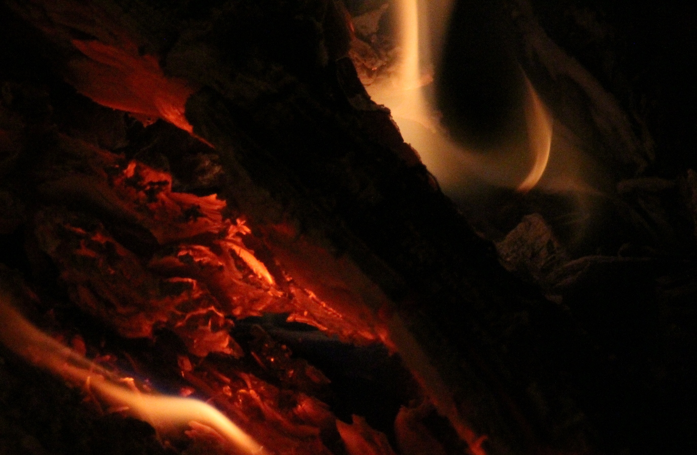 We sit before the campfire, just my honey and me, the big cabin behind us empty but for three old cats.  The house looms large.  Unused.  Wasted.  Too big.