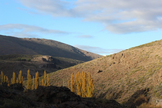 By day, the mountains turn to gold. Flaxen hillsides, flaming trees, yellow leaves caught in the wind. “Lluvia de oro” as leaves fall like raindrops of gold. Morning frost burnishes the broad grasses that grow by the little creek, as we jump from slick stone to slick stone, crossing to lead our horses in from pasture. Crisp light casts long, sharp shadows mid-day. The river a steel ribbon wrapped about this land on days when the sky hangs low and heavy. On those days, the grease bush smells like burning sage when we brush against with wet jeans and the bright red hips of wild rose stand out shockingly as Christmas ornaments on a Christmas tree. Layers of wool and down and the fireplace a welcome relief as we sit before a big blaze at night and talk about our day, today, everyday. Not tomorrow. We’ll discuss that after we wake in the morning, build another fire, have our matέ, and wait for the sun to hit this house.