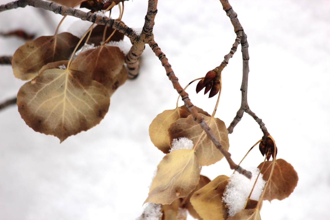 Naked aspen and stripped spruce hold the bounty of another early snow, fat and plump and plentiful on otherwise blatant branches.