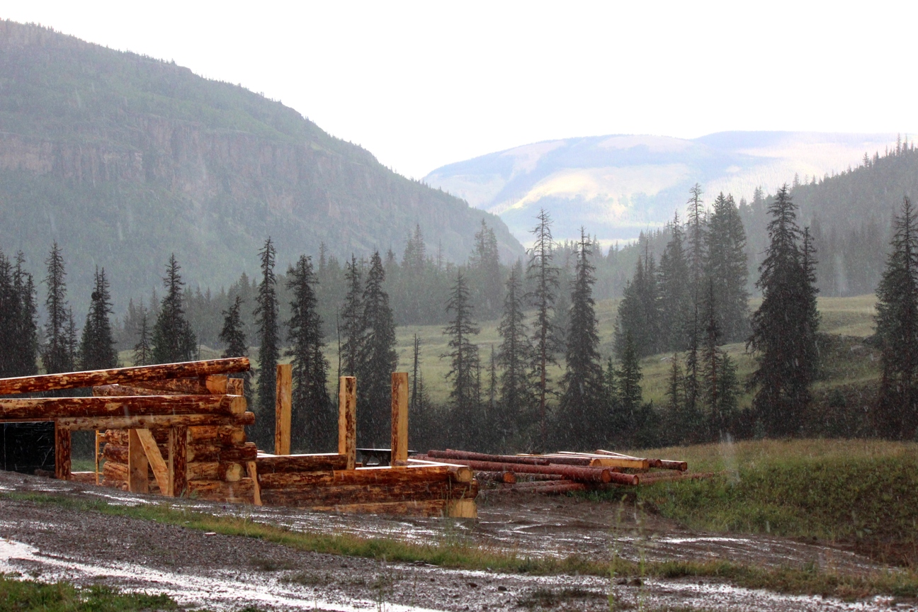 Each log with a story to share, seemingly old as time, though even in the widest trunk we count back only three hundred years. Before the miners. Before the homesteaders. Before the dam, the fishermen, tourists and so-called old timers. You put it all into perspective. Counting the rings in the base of a tree now used to fashion the rising walls. It’s as if we’re creating a living museum for the trees. The big old ones. The kind my grandchildren and their children may never see live and green in these mountains.