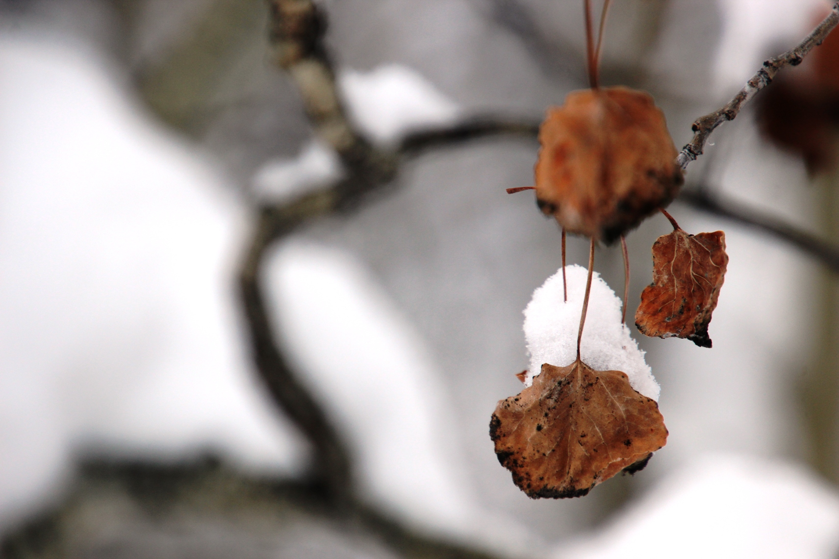 fall leaves in winter snow