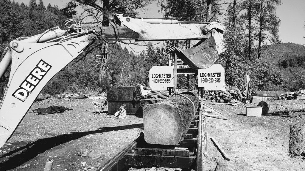 The process starts with Bob doing most of the work you forget needs to be done before you even get to mill: falling trees, delimbing and clearing slash, skidding logs, loading them onto the mill. Then I get to do my magic.
