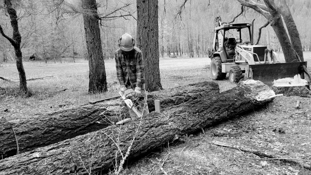 You fall trees, skid them, clean the slash, load logs on the mill, saw them to size, stack them.
