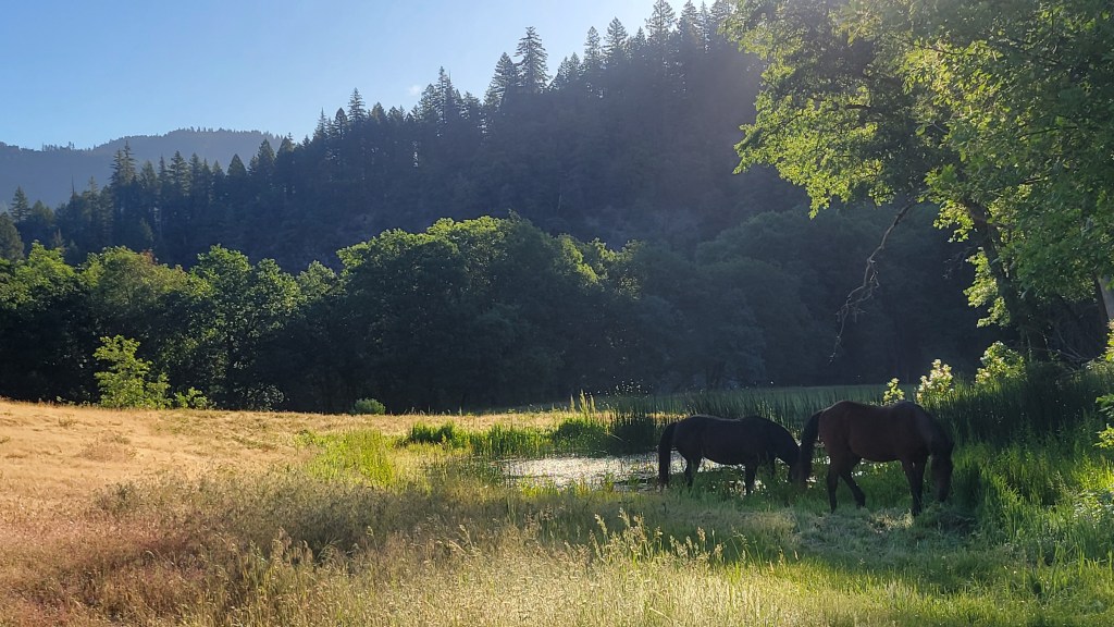 We took the big leap almost seven years ago when sold our home and all the furniture, put precious books, paintings, pictures, kid art and other memories in storage, and bought a truck and fifth wheel. The reactions from family and friends were all over the place. Our adult kids were all for it. Many thought (and still do) that we’re crazy. “You mean you don’t have a house to return to?” The impetus was a dear friend getting brain cancer seemingly from nowhere, and losing her five months later. We’d talked about it, gone to RV shows, and I even kept a brochure stuck on the wall where only I could see it from my teacher’s desk as a reminder. After losing my friend, I looked at my husband and said, “What are we waiting for? We already don’t like to drive at night. We’re both retired. Let’s do it.” It took him all of a split second to say, “YES.” Before we knew it we moved into the trailer, the house sold, and a few months later we were off with the two remaining dogs. We had big plans to be on the move all the time. But alas, COVID put a big dent in those plans. Which led us here. To the foot of the Wallowa Mountains in Eastern Oregon from the end of April to October, hosting at an RV park. This is my favorite place on earth, we spent our summers here at my grandmother’s cabin. My sister and I learned to ride here, our only opportunity, seeing as we lived in Portland. That led to summer jobs as hourly and day guides at one of the corrals. The best job I’ve ever had to this day. Riding into the mountains almost every day. Now, we divide our time up between family in Texas and California. With mixed adventures in between. This lifestyle has allowed us to spend more time with adult children and grandchildren than we had ever dreamed.