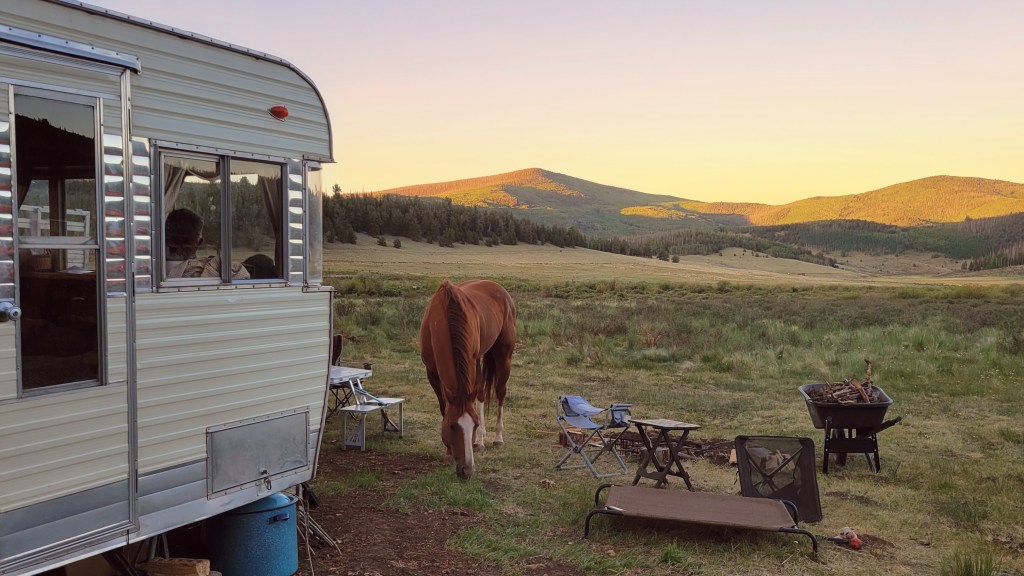 Red flag warnings flare again today. Strong winds rattle the little camper. Dust devils twirl and dance along the dirt road where the horses run. Logging trucks stir lingering amber clouds in the far distance. Dry and dusty and this feels like the Wild West. And today, it feels like home.