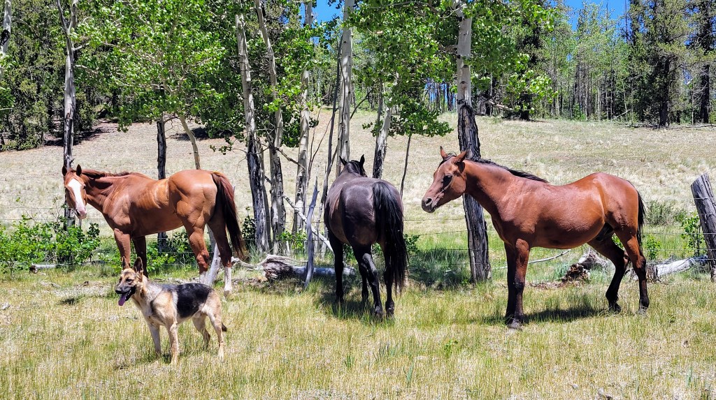 The old guys met the new guy, nose to nose, ran back and forth once in front of the camp for maybe 100 feet. Then put their heads down to eat. That’s kind of how it’s been ever since.