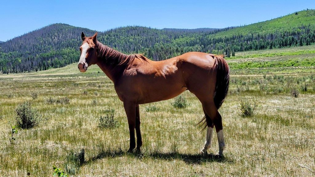 I don’t know what they called him at the race track, but the folks who sold him to me called him Jessie. A good, historic Western name. We’ll see if it sticks. He kinda looks like Cinco to me. See, before him, there was Tres, and there was Quatro, and two other sorrels with stars before that. This guy has a blaze, not a star, but sorrel he is, so we’ll see which name takes hold as he settles into life on this mountain with us.