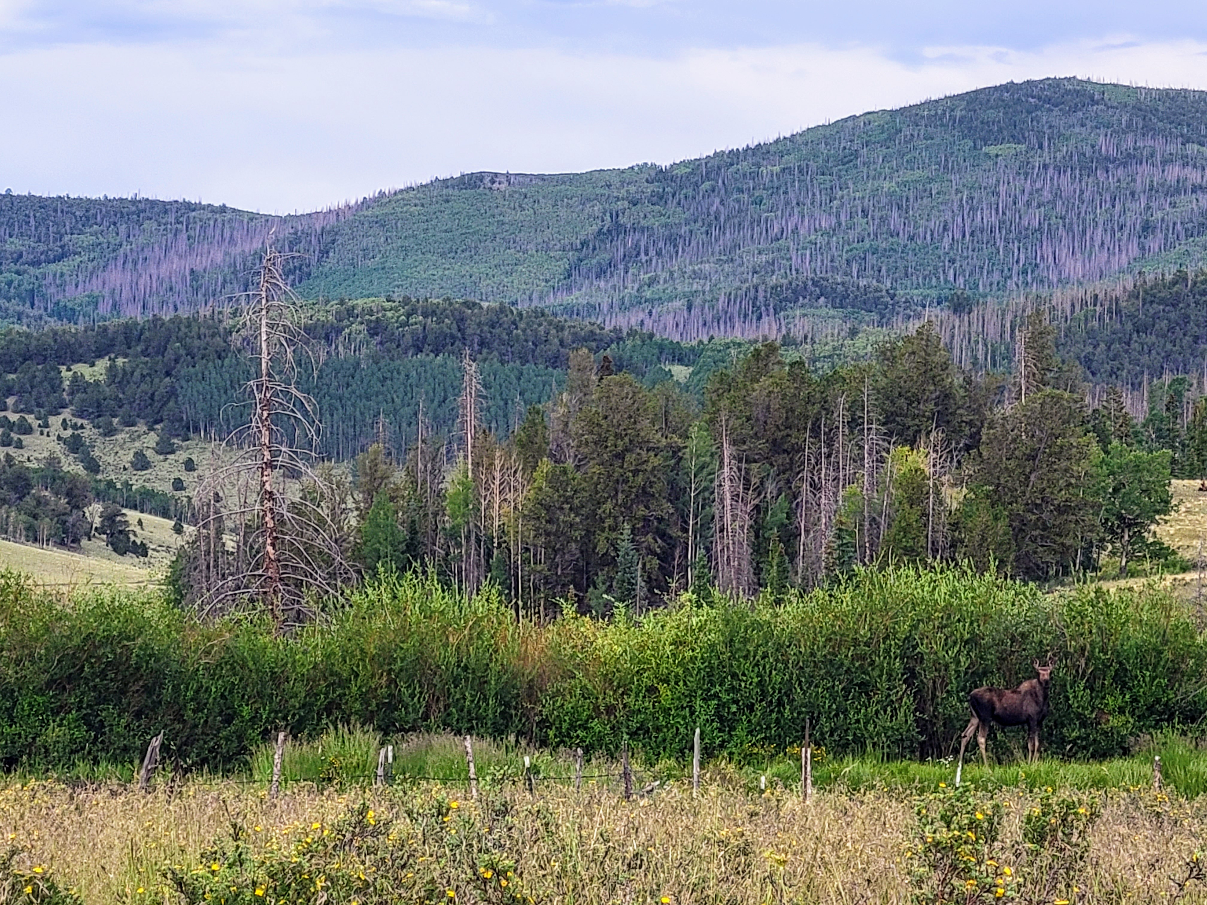It’s neat to me to note that, if they are not chased by swarms of tourists and a continuum of traffic, the elk and moose don’t high tail it for higher ground. They remain in this elevation all summer long. It was not this way where I used to live, where as the flood gates of people opened, the wildlife hit the trail, vanished into tall timber, and headed high. I thought that was normal and natural, but am learning it’s just what they’ve done to adapt.