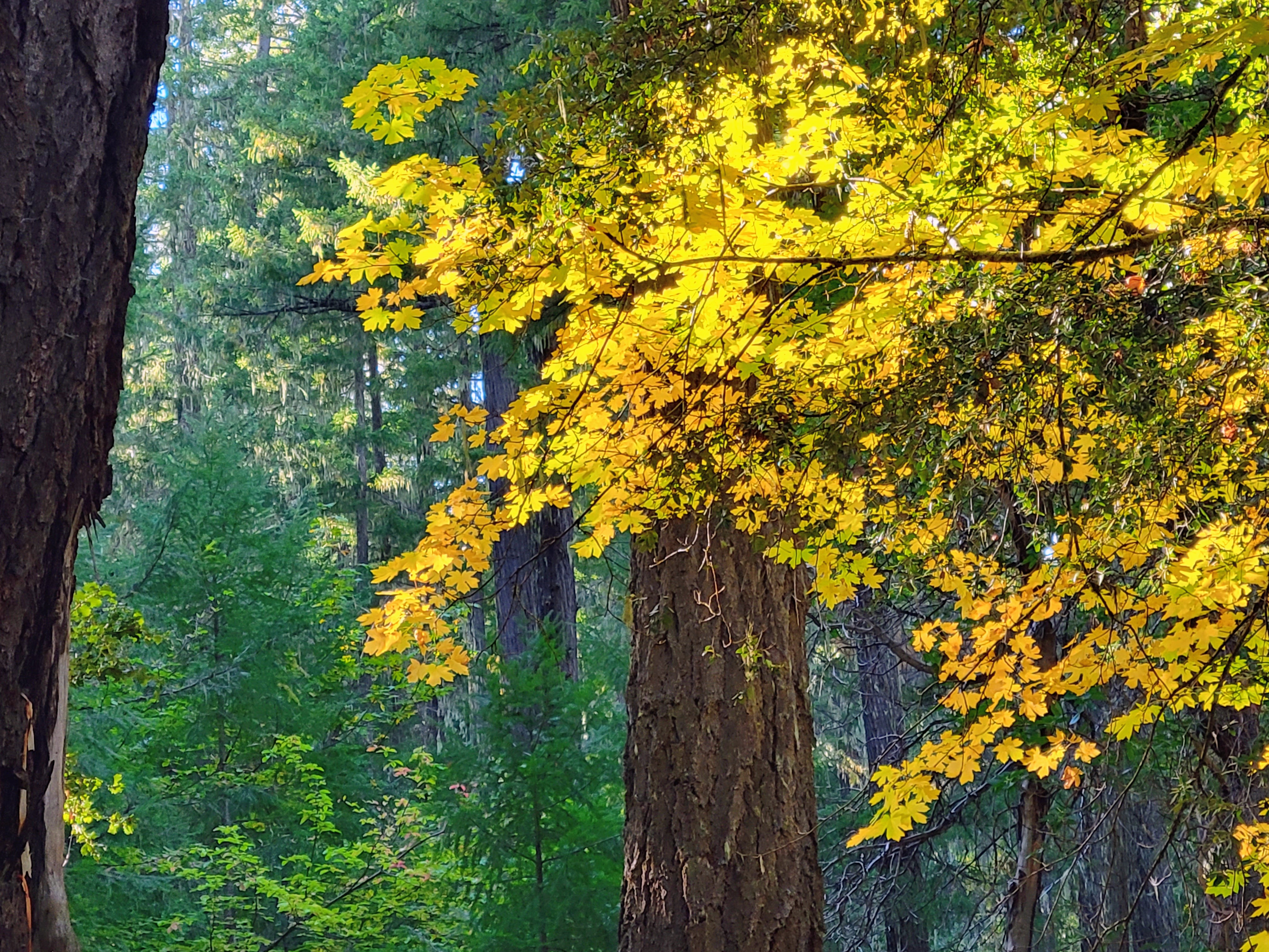 Where deciduous leaves turn from vernal green to glowing gold and burnt crimson while wild skies turn from unbroken blue to strata grey and the steady sound of rain dancing on metal roofs equals that of the swelling river.
