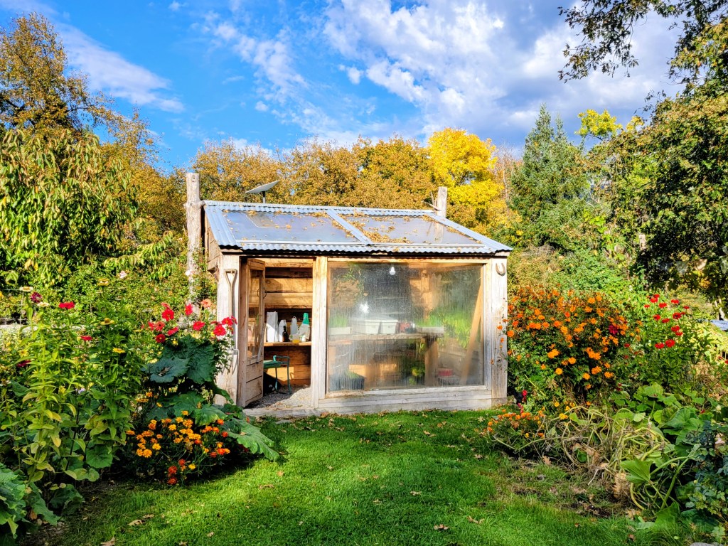 Where I’m fed generously by the land, pampered by spring water and warm moist air, the abundance of the garden, and luxuries of indoor plumbing and a queen sized bed.