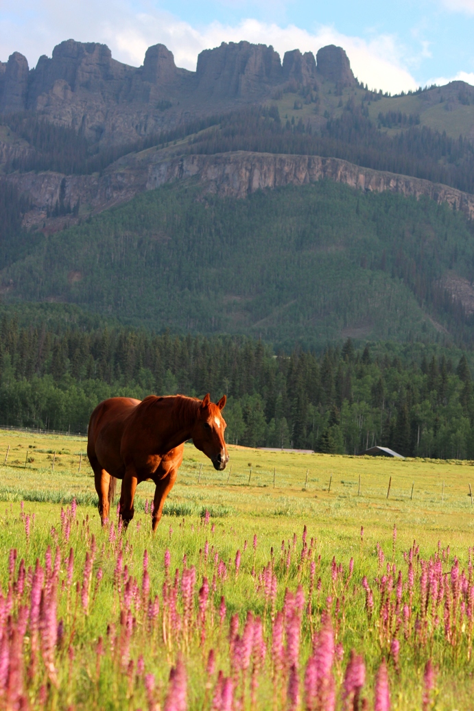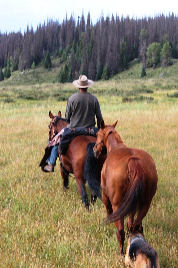 Simple pleasures. Hard work with a purpose. I wonder if our draft horse, Norman, feels the same. I somehow feel he does. Why wouldn’t a horse feel pride in his accomplishments, in doing what he was bred for so many generations to do, what he does so remarkably well? I’ll sing Norman’s praises, for he can’t sing himself, but I swear, he knows he’s something special. And he is. One gentle giant of a horse willing to be out there with us, part of the team, getting the work done. Does he know the ditch we maintain for a few weeks each summer will flow water that provides for households and farms in the San Luis Valley eighty miles below? Of course not. And as for us, it’s not about who owns the ditch we are hired to maintain, who owns the water that has become liquid gold throughout the West, or where the water ultimately ends. It’s really quite simple. It’s just about doing a good days work and doing the best you can with what you have. Here in the Weminuche Wilderness, our tools are simple. The greater reliance is on our man power, woman power, and horse power. And although it’s just me, my husband, our son, a few horses and our dog, Gunnar, on days like today, I swear we can be a mighty powerful force.