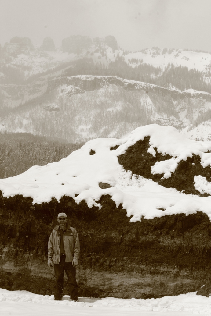 We felled our first tree from across the frozen river. Dead standing. Beetle kill. Dragged it across the Rio Grande in the dark depths of winter.