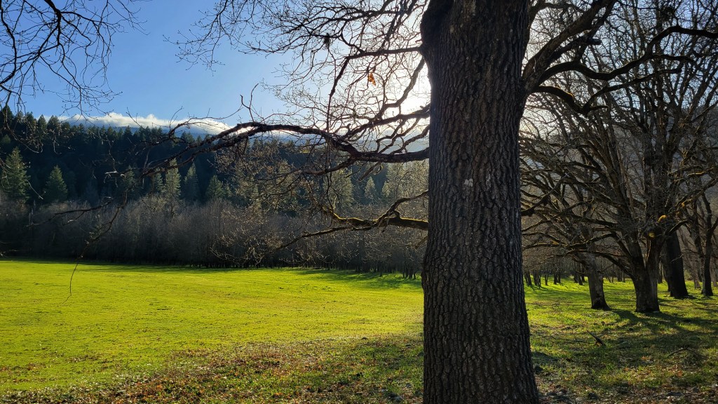 Yesterday ended with store bought cheesecake (nothing like the kind Lisa makes back in CA) shared in that little bed while over Bob’s shoulder I watched a band of cow elk meandering along our path. This morning started with two big bull moose crossing pasture so close I thought it was my horses. It also began with ice in the dog water bowl and a heavy frost across our land. If you don’t think I’m regretting leaving that heavy chore coat back in California… I should have known better, but it’s hard to think of frost and freezing and chill when you’re sweating in shorts and flip flops.
