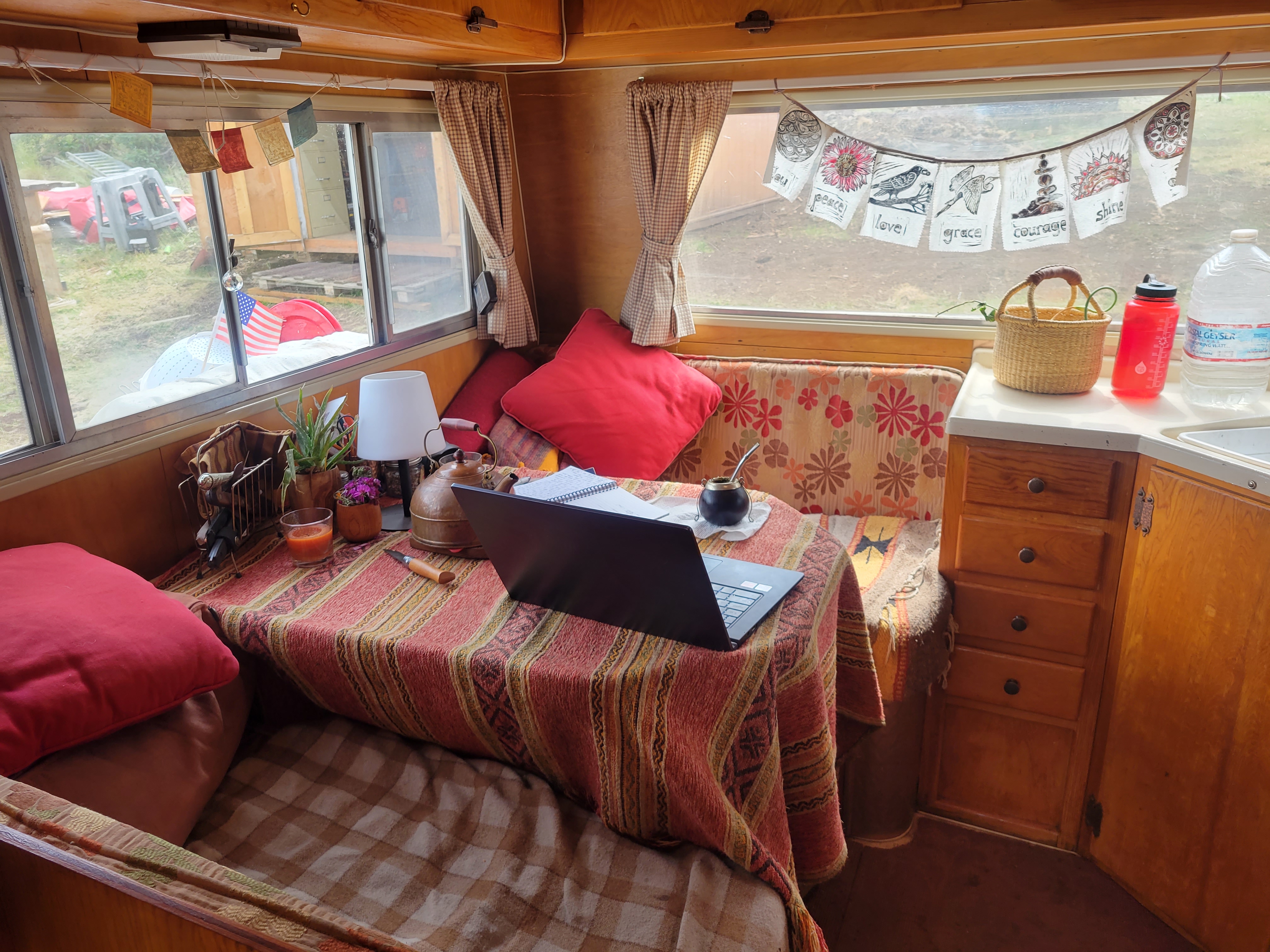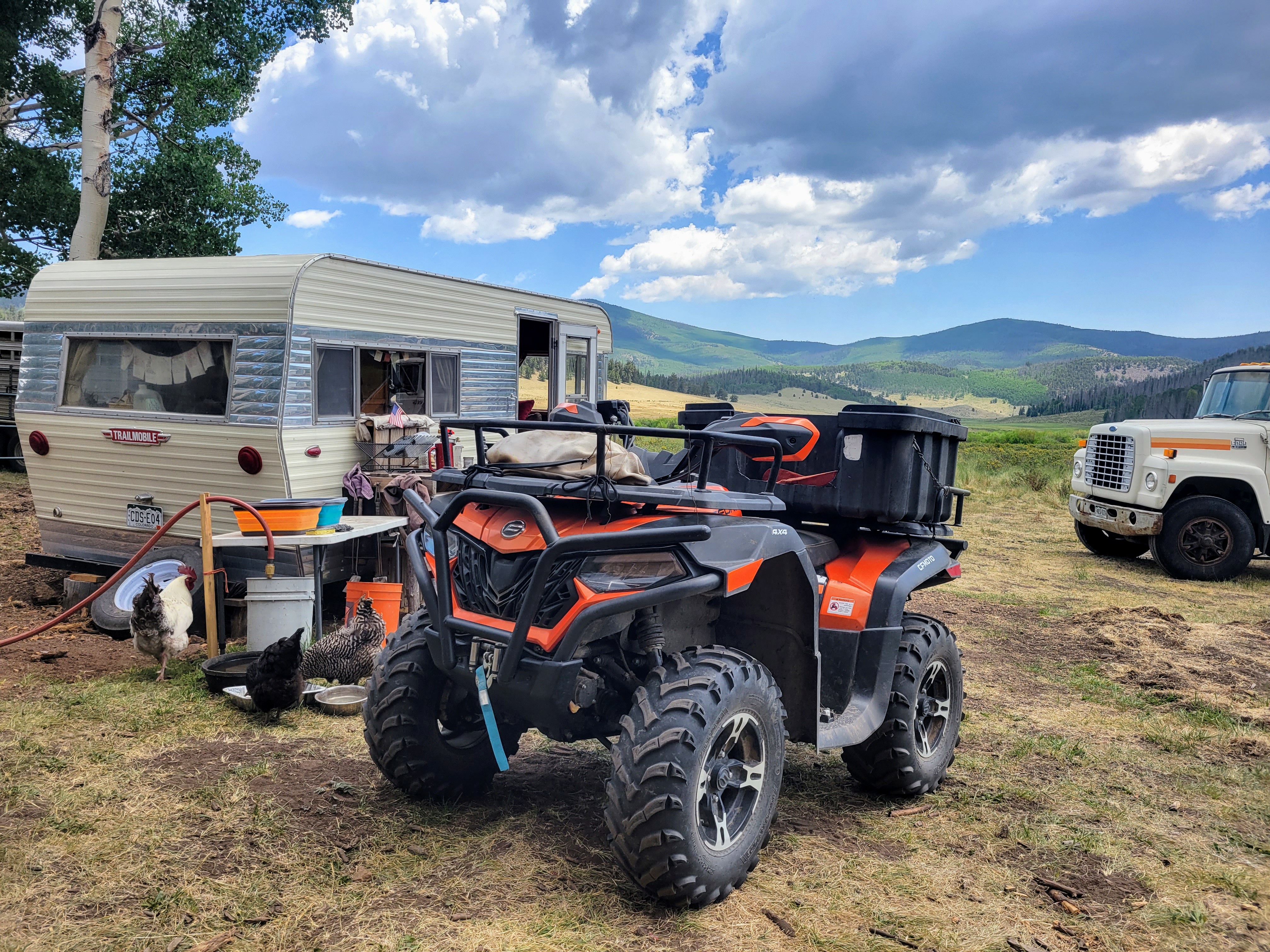 We live in a 14 foot camper circa 1964 with a nearby outhouse, no indoor plumbing, hauling drinking water from town and pumping wash water from the creek. We do our laundry by hand in an old churn style wash tub and hang it out to dry on a line strung along the horse fence. All in all, you learn to wash little things like socks and underwear, but realize there’s not much sense in washing the jeans when they’re just going to get dirty again. So, you don’t.