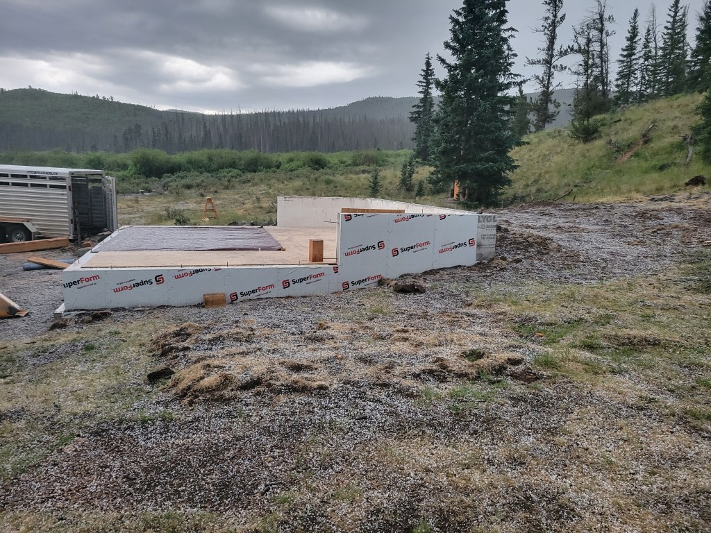 I haven’t taken time to train the new boy and/or ride the old one much this summer. I’ve done plenty of both in the past, and will again in the future, no doubt, but this summer is not about taking time off far beyond our daily evening walks. This summer is about getting solid walls built and roof up over our heads (hopefully) before the snow. That’s pretty much all consuming and not something one overlooks out here. It’s that in-your-face pressure and mission and challenge you can’t not see (even on days you wish you could). It’s even about building a solid shelter for the horses, because before too long, this rain and hail will turn to snow, and they too will need more than that big old tree can provide.