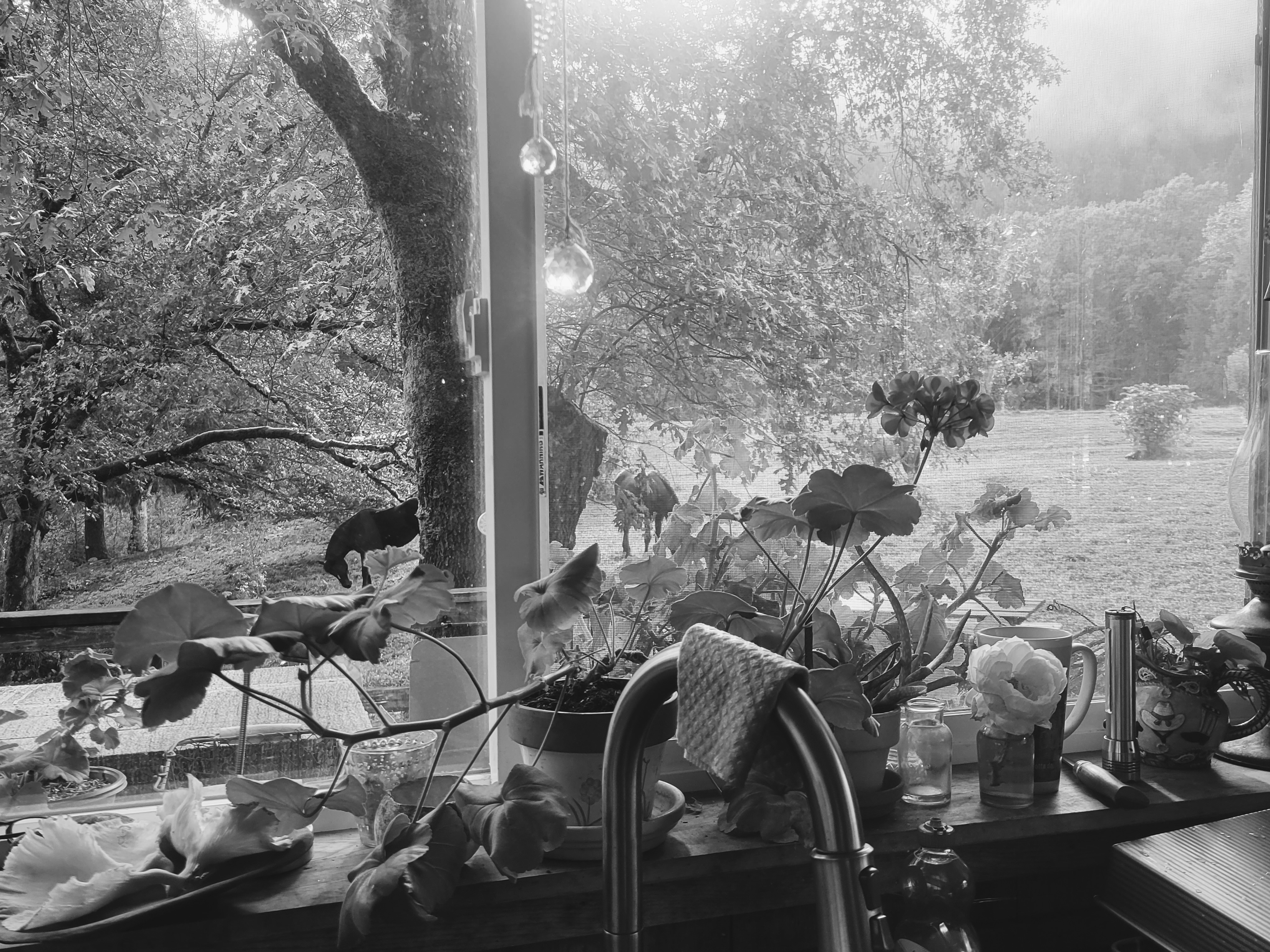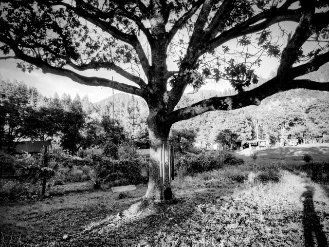 Here in the far north of California, she does not scream her arrival. You must listen. Wind is quieter with leafless trees. Fog and frost alternate, making mornings an eerie scene to wander through, beneath tangled bare branches, oak moss and old man’s beard. Stripped of autumn’s gaudy golden display, you see more of her pale sky, muted and subdued by the season. You notice her wrinkled arms exposed, gnarled fingers of naked branches reaching upward, outward, as if she is holding up the heavy air. You walk with her as if somewhere in some old western sepia photo, crunching leaves with every slow, measured step. And you stand with her, simple, stark and unadorned. And breathe, because she invites you to pause, to slow down. To look inside. In your home. Around the old wood cook stove where the kettle ever rattles, the cats are curled nearby, and the smell of biscuits wafts as a welcoming chime. And in your soul. Those dark places. Warmed by the fire and intermingled feet together on the sofa shared with perchance a dog, a cat, and a cup of tea.