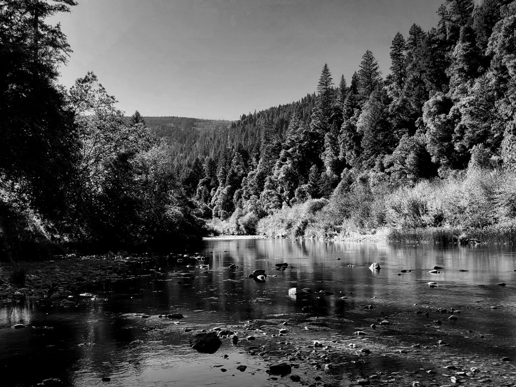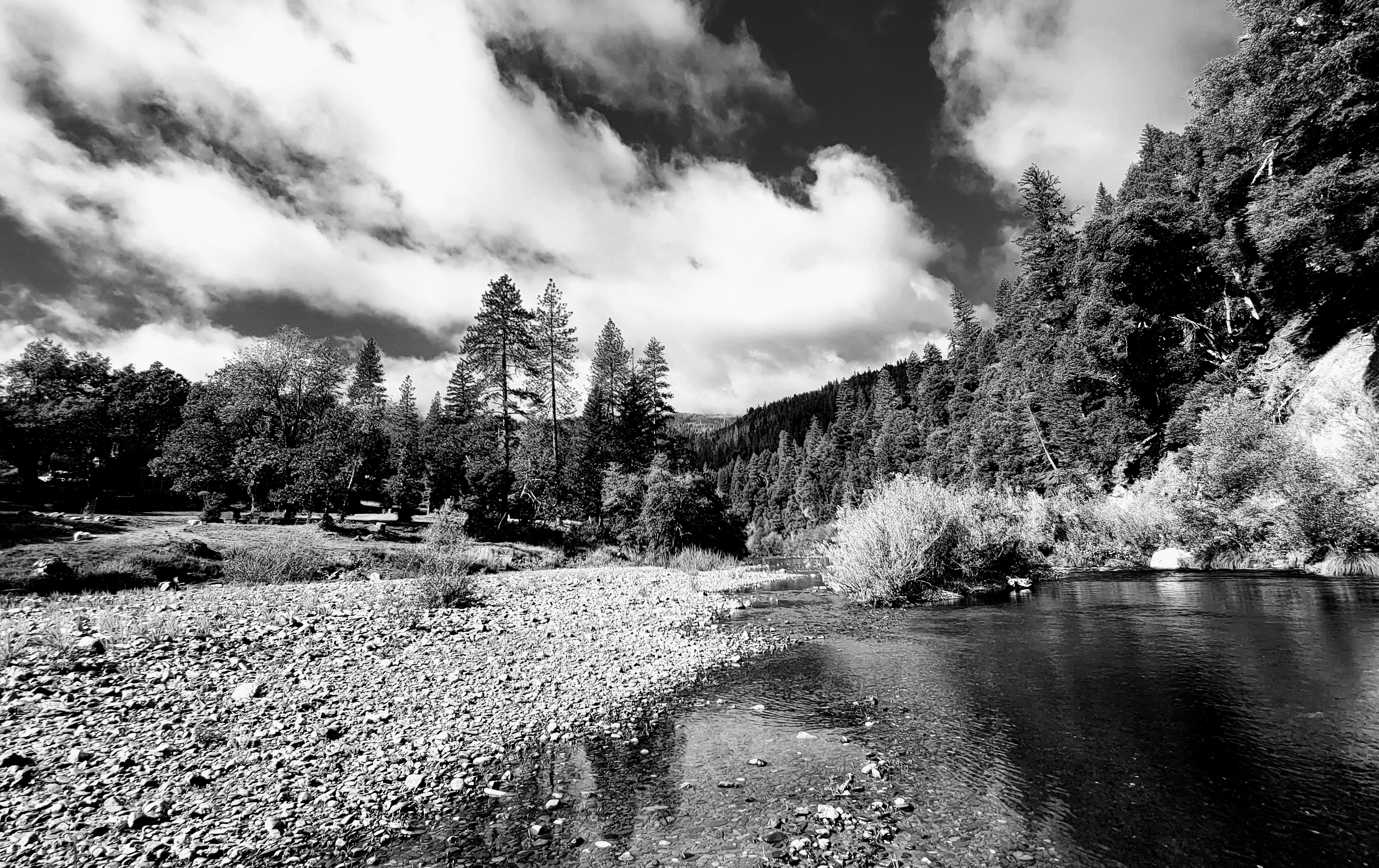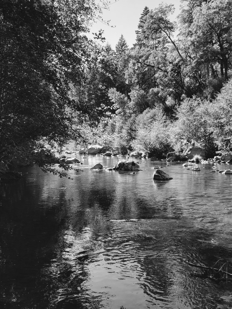 This morning I sit out in diffused sun beneath a waving veil of high clouds. Eyes closed. Lulled by the song of the river, blending high notes from flickers and phoebes, chatter from dippers and jays, and a light wind softly trembling through the last holding leaves on these ancient sprawling oaks. And ever the refrain of the river harmonizing wild and free as the blood that flows through me, inspires me, fires me, and keeps me afloat.