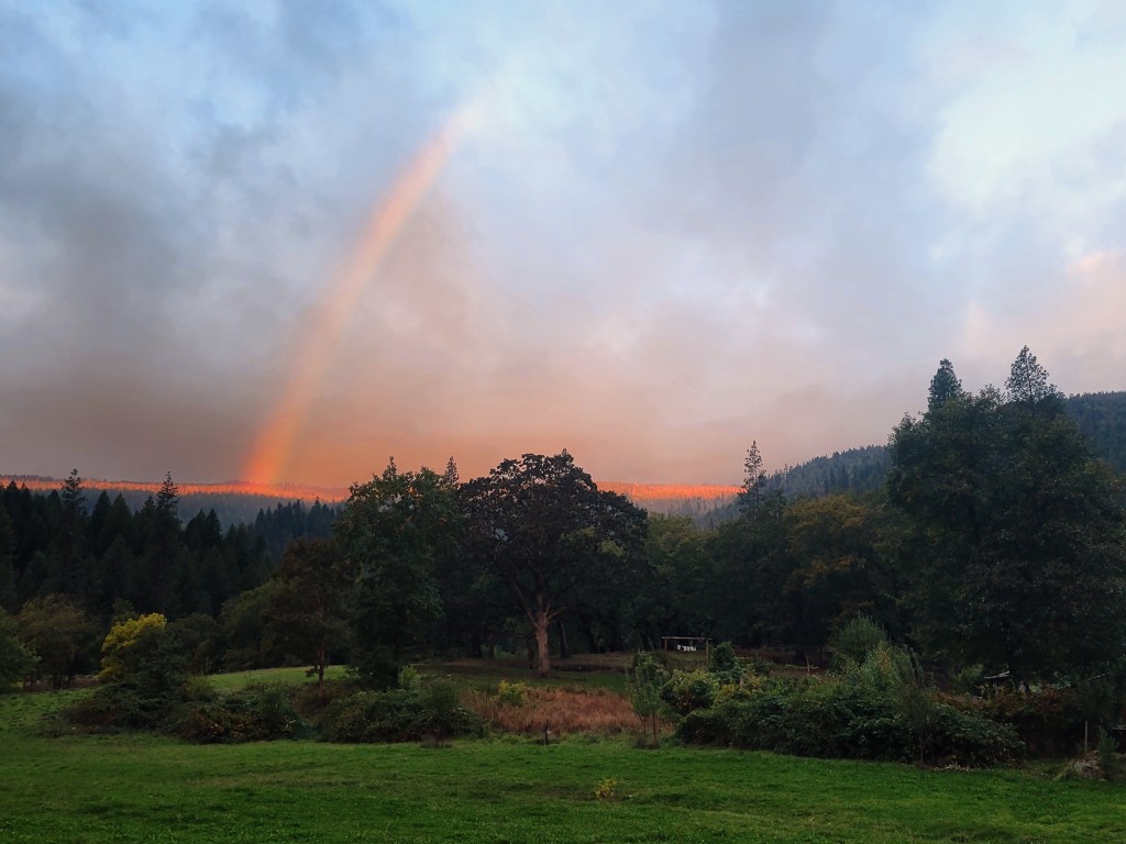 This is what I live with. A herd of mother elk and their babies grazing on our lower meadow after the sun dips down and the evening show of rainbows and magenta and dark clouds has settled down. A little band of bull elk meandering along our driveway, as curious and fearless about our horses as they are of elk. Mama moose along the fence with a yearling calf by her side, and a young bull moose trailing behind. She watches us as much as we watch her. Only she remains while we alter our route so minimize our impact upon her. Our fences and roads, our barking dog, the roar of equipment and buzz of tools, and the sound of our somewhat soft voices –we have disturbed her enough.
